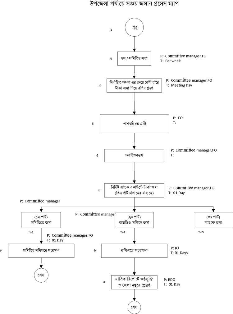 উপজেলা পর্যায়ে সঞ্চয় জমার প্রসেস ম্যাপ